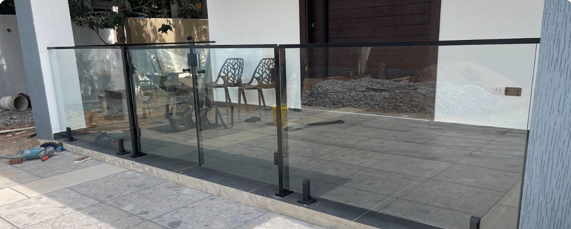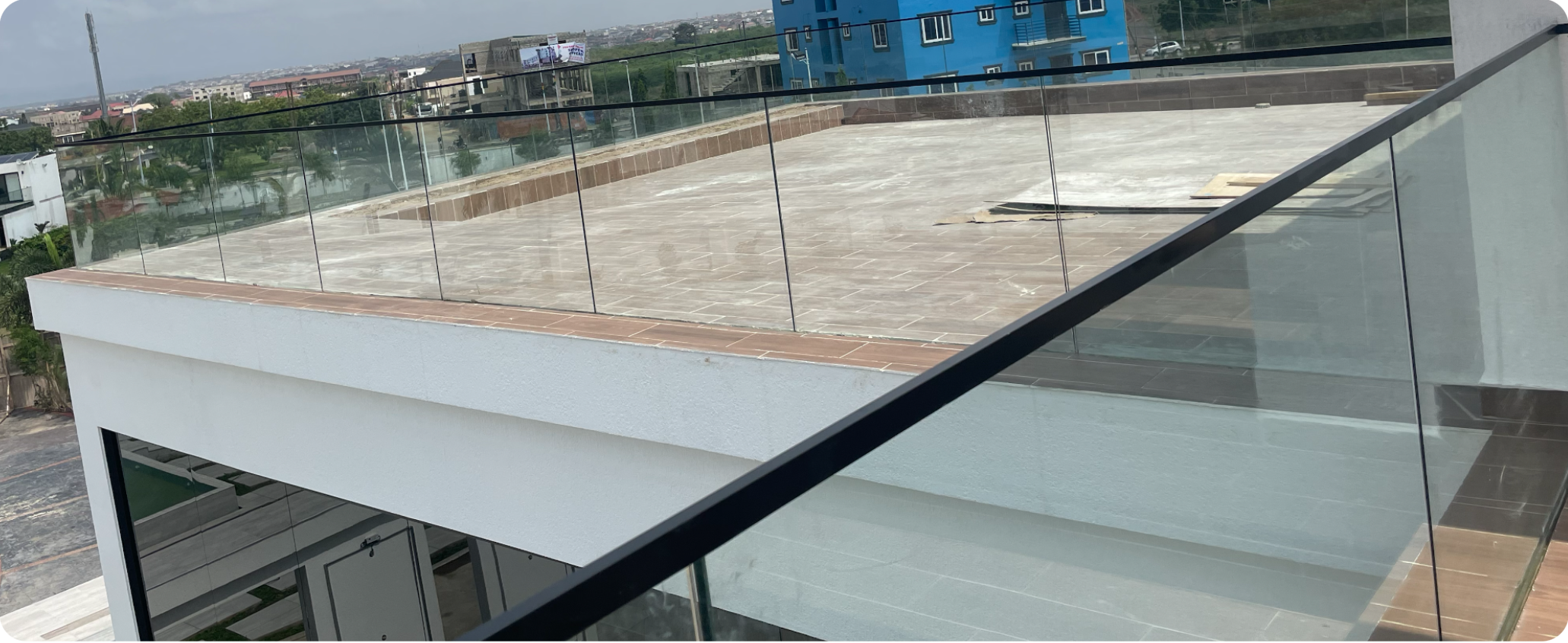 Roof-top black capping frameless balustrades provide a sleek, modern safety solution for rooftop terraces. The frameless glass panels ensure unobstructed panoramic views, while the black capping adds durability and a stylish accent. Resistant to weather and low-maintenance, this design enhances both safety and contemporary elegance for outdoor rooftop spaces.