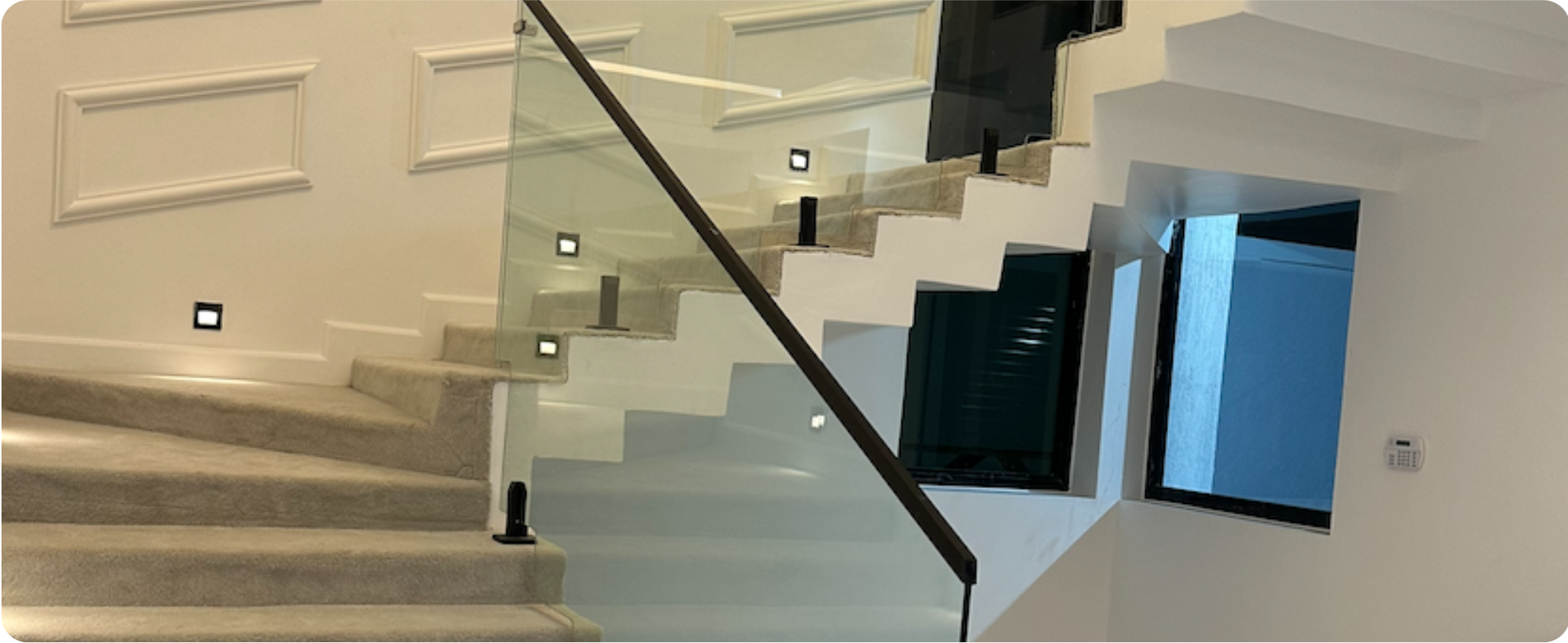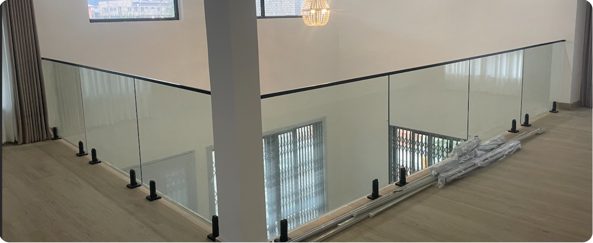 Indoor black capping frameless balustrades offer a modern, elegant solution for staircases and mezzanines. The frameless glass panels create an open, spacious feel, while the black capping provides structural support and a stylish accent. Durable and low-maintenance, this design combines safety, sophistication, and contemporary appeal for any interior space.