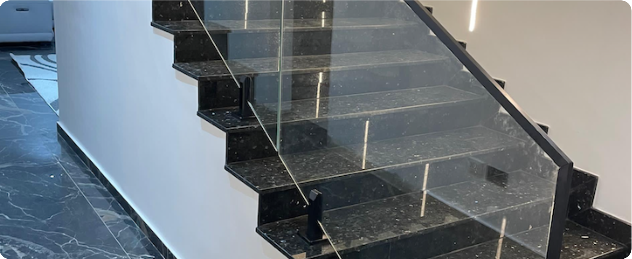 Black capping frameless balustrade stairs railing offers a contemporary and elegant solution for staircases. The frameless glass panels provide unobstructed views, while the black capping adds a stylish contrast and structural support. Durable and low-maintenance, this design enhances safety, sophistication, and modern appeal in both residential and commercial interiors.